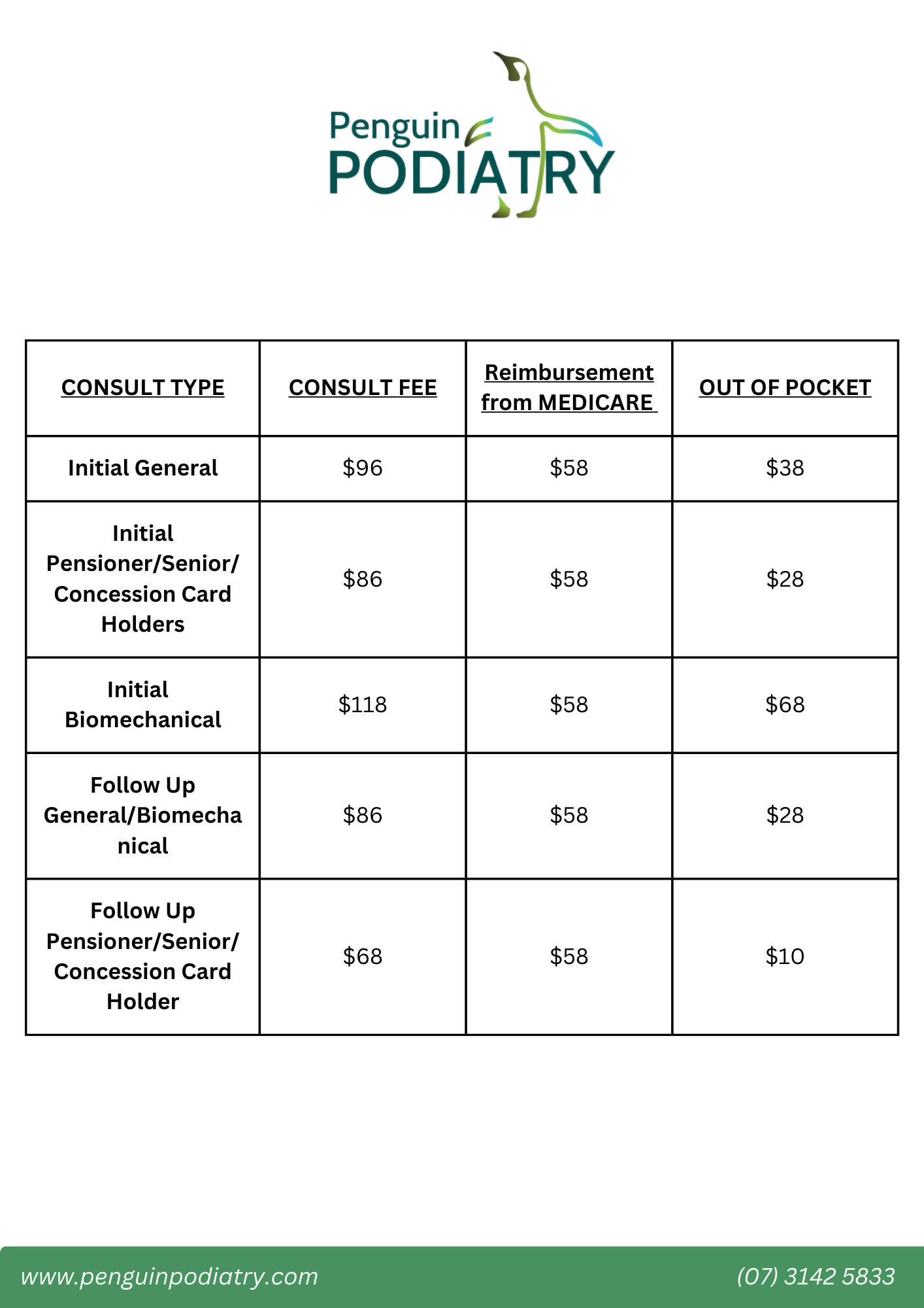 Please bring any referral letters and or medical reports, current footwear and any old footwear, any shoe inserts or orthotics you